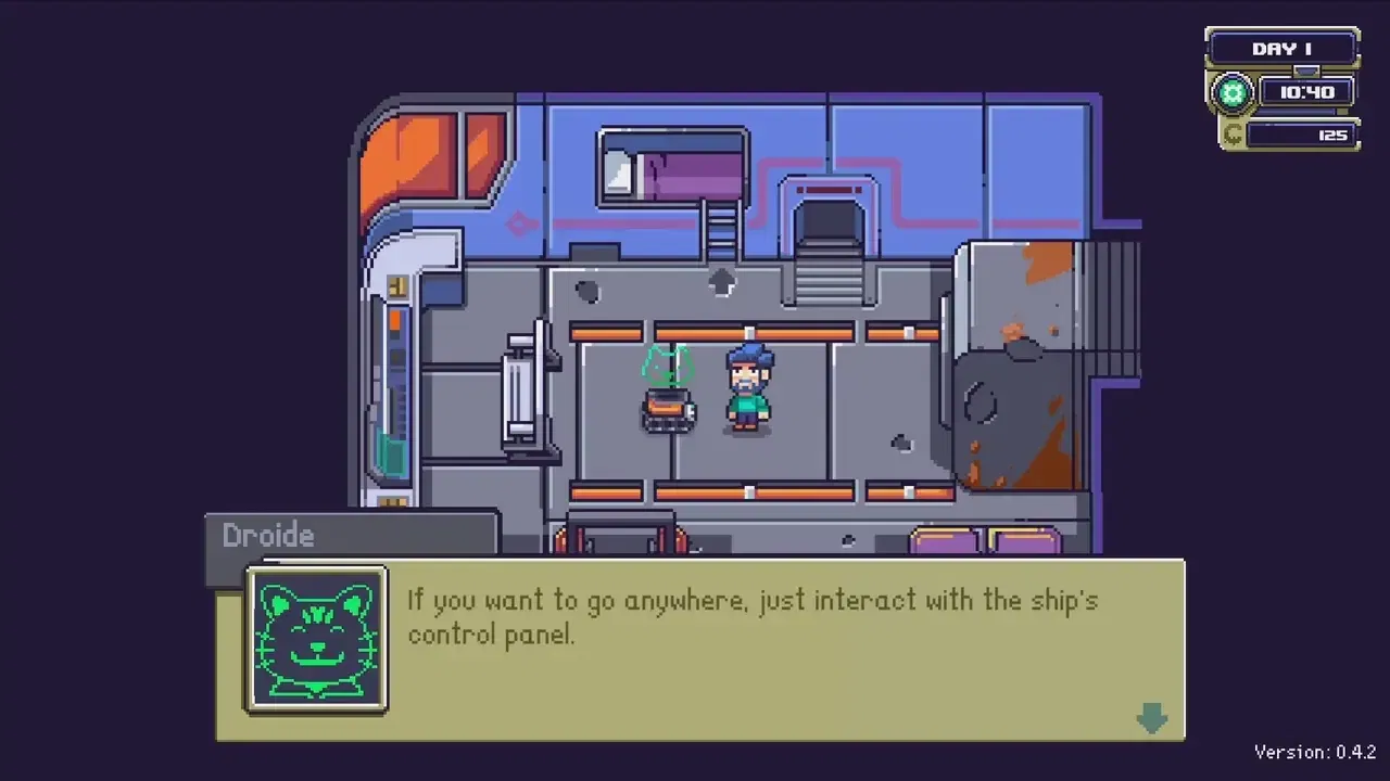 Ačkoli vaše loď zažila lepší časy, stále vám může pomoci pohybovat se mezi různými planetami sluneční soustavy, prozkoumávat je a sbírat suroviny pro vylepšení vaší farmy, nástrojů a lodi.